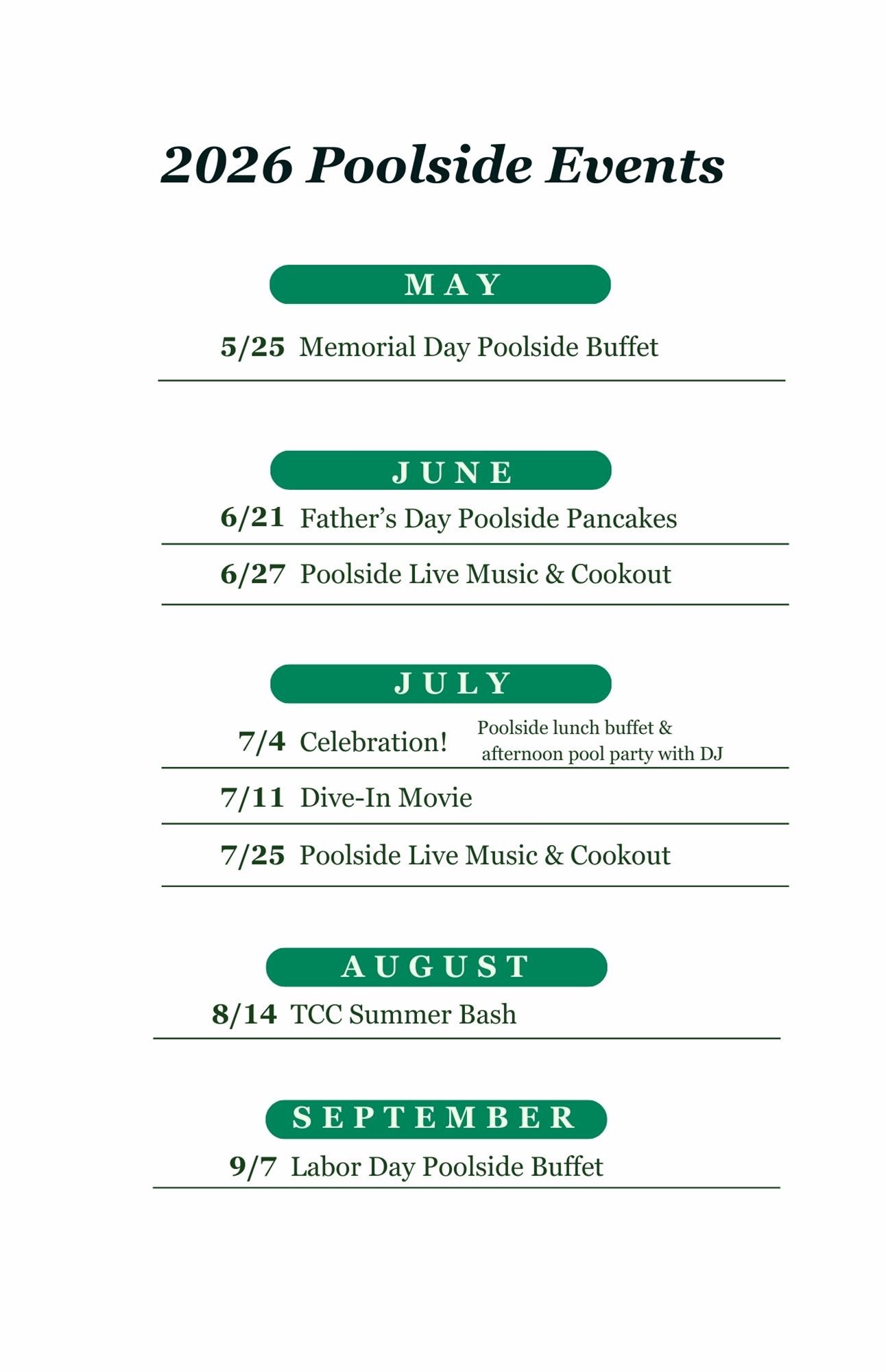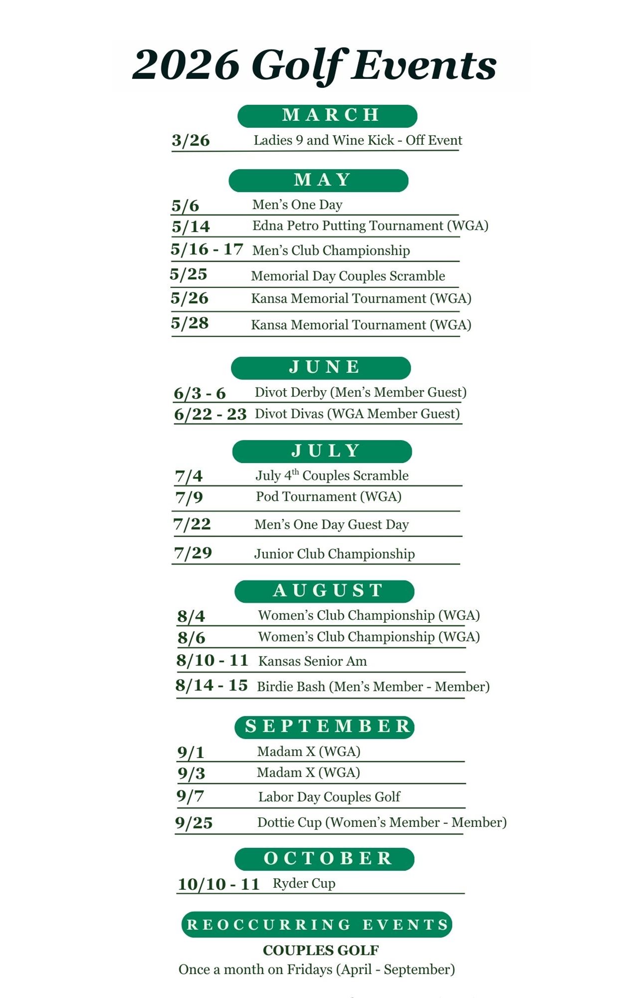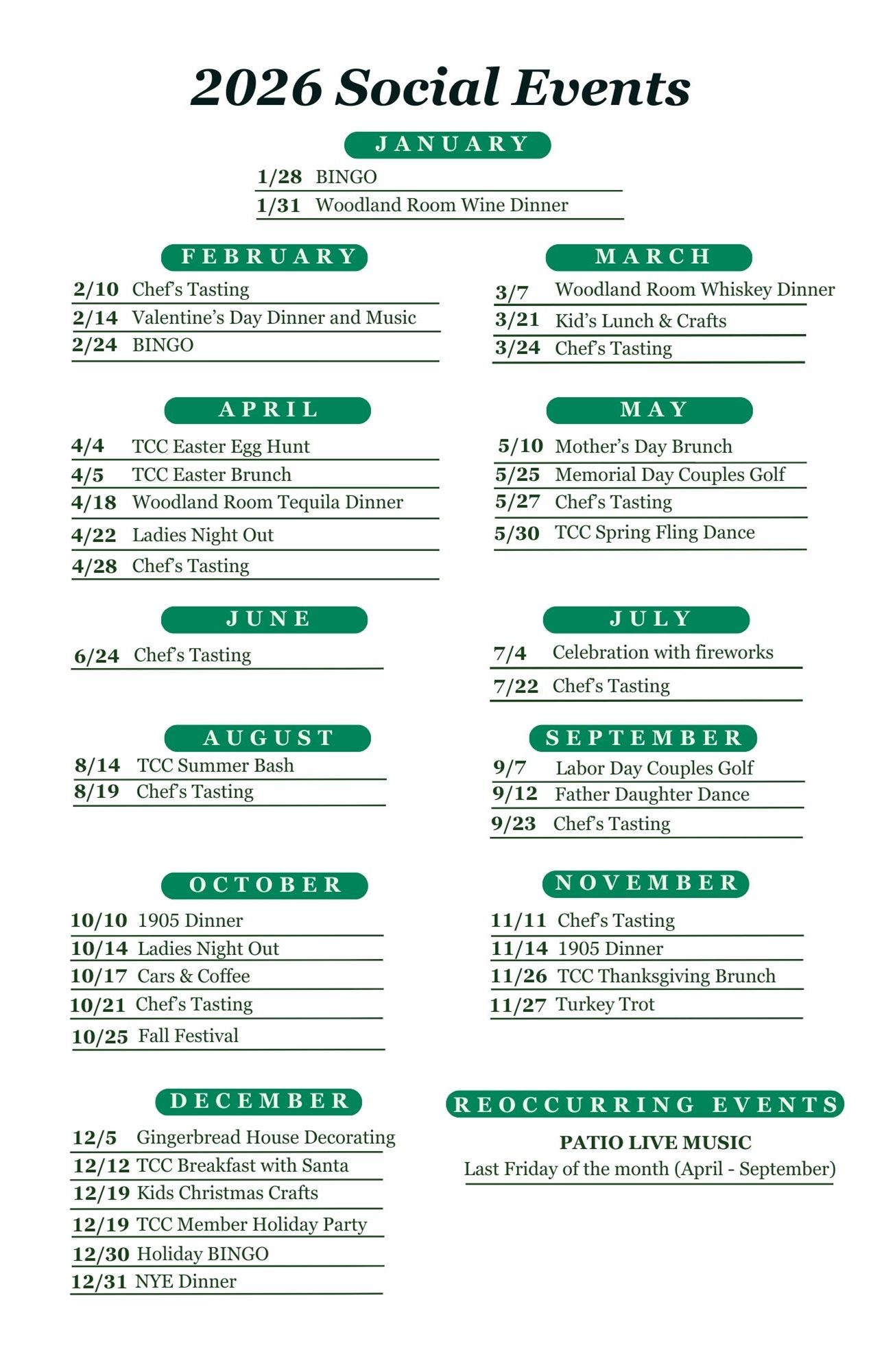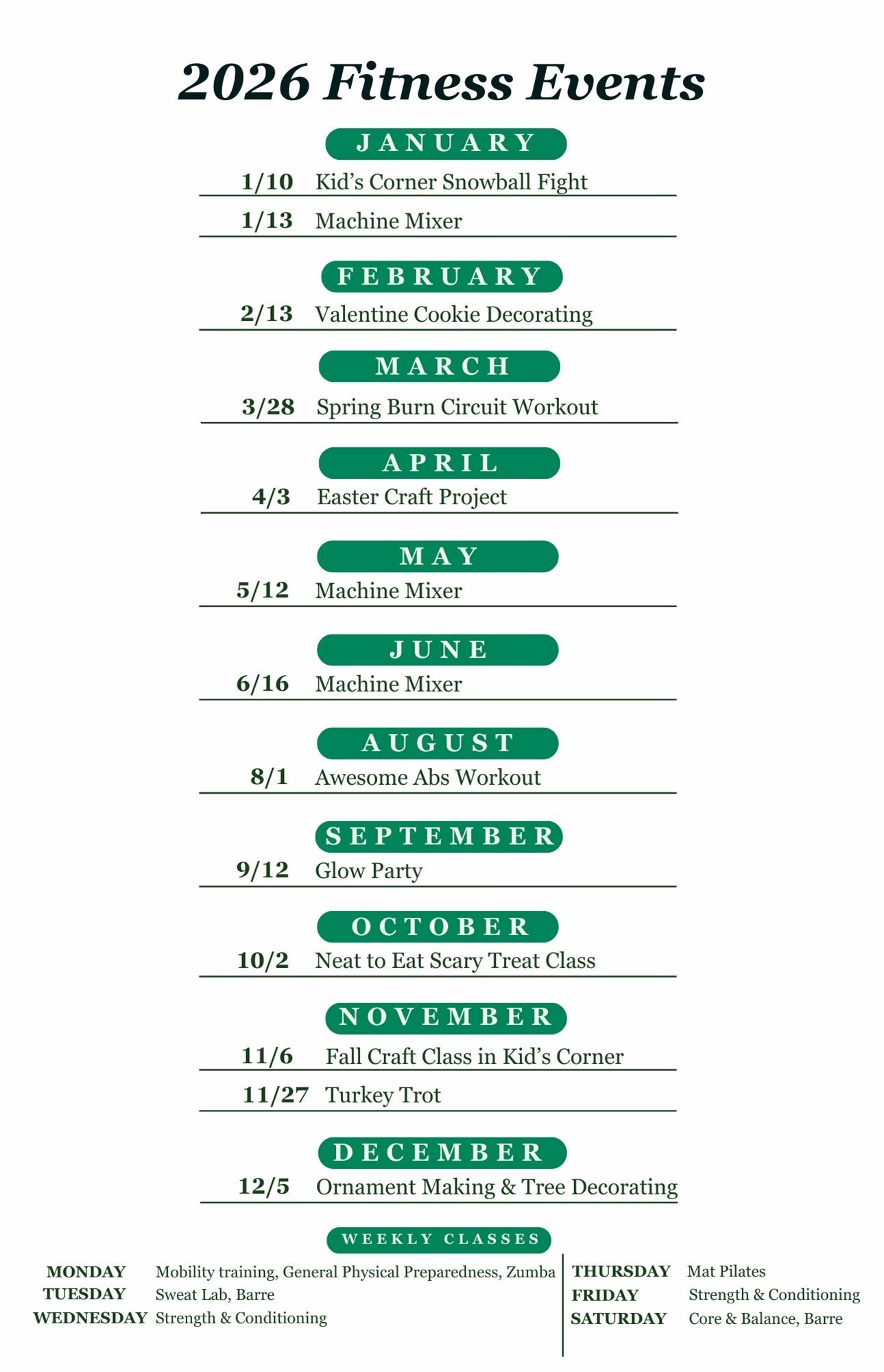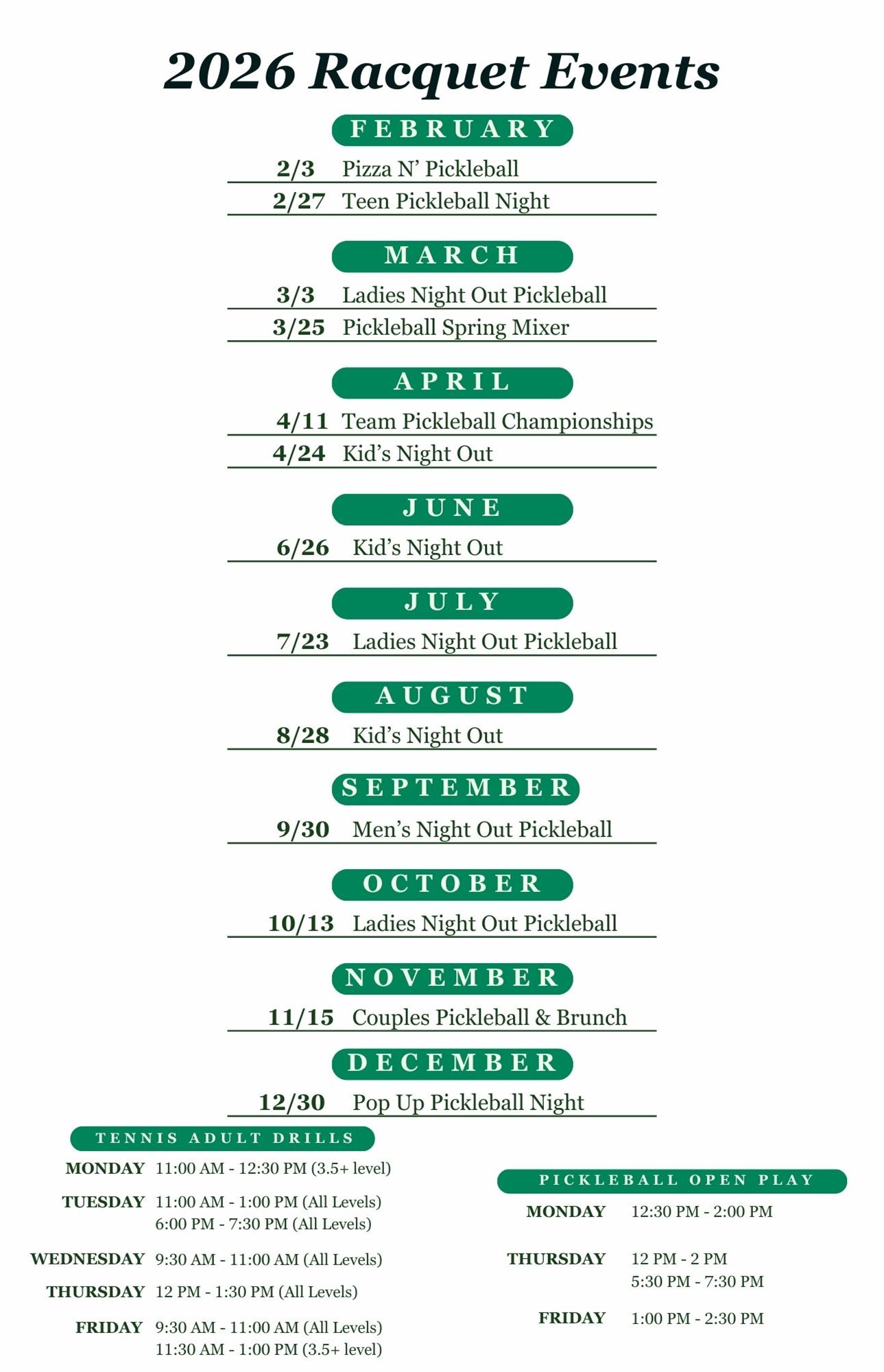 2026 Schedule of Events